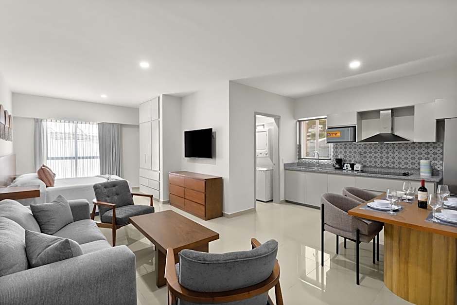 Guests will have a special experience as the studio offers a rooftop pool. The spacious studio features a private bathroom, air conditioning, a washing machine, as well as a seating area with a flat-screen TV. The well-fitted kitchen has a stovetop, a refrigerator, kitchenware and a microwave. The studio provides a coffee machine, a dining area, a wardrobe, a TV, as well as city views. The unit offers 2 beds.